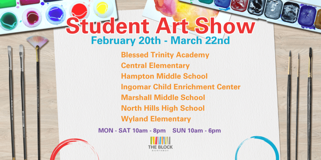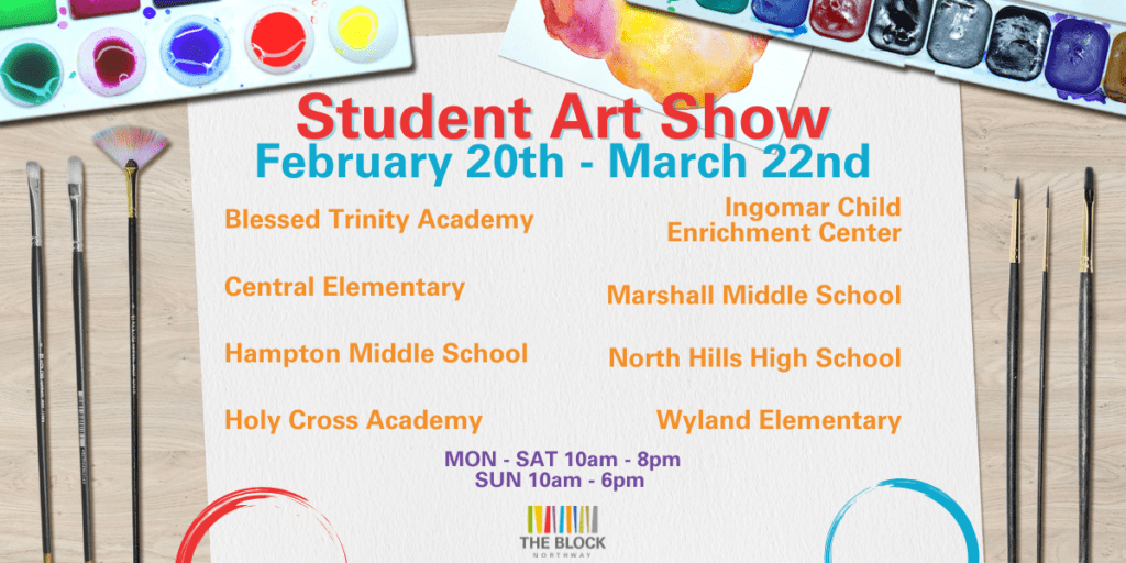 PITTSBURGH —– The vibrant and creative artwork of local students will be on display at The Block Northway’s upper level between Lands’ End and DSW shoes from February 20 to March 22, 2026. This exciting student art show will feature pieces from 8 participating schools, showcasing the incredible talent and artistic expression of young artists in the area.